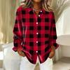 Женская рубашка-блузка с рождественским принтом и пуговицами, длинный рукав, повседневный базовый рубашечный воротник, обычный топ