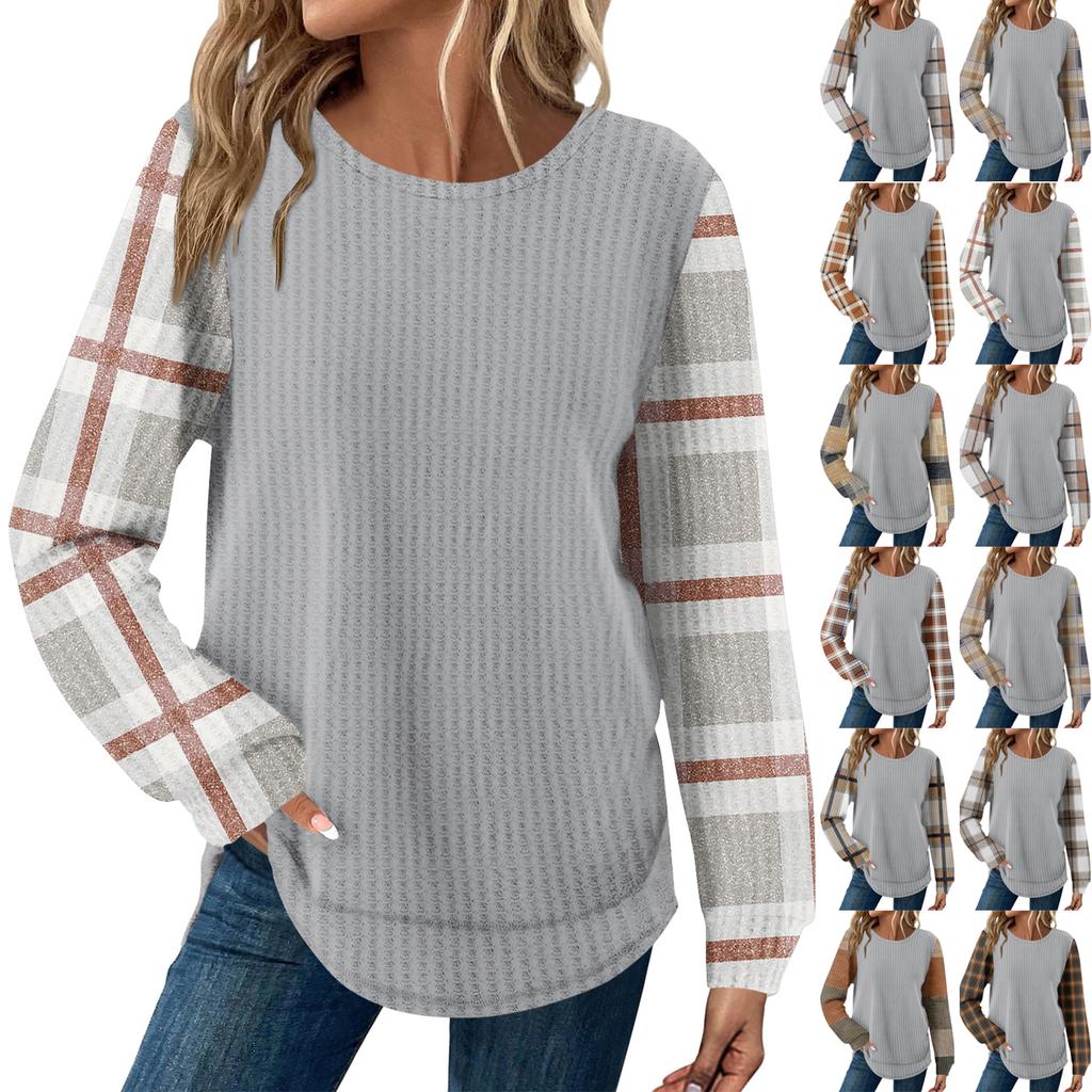 Женский повседневный топ свободного кроя с круглым вырезом и длинными рукавами в клетку — купить товар онлайн с бесплатной доставкой по всему миру!