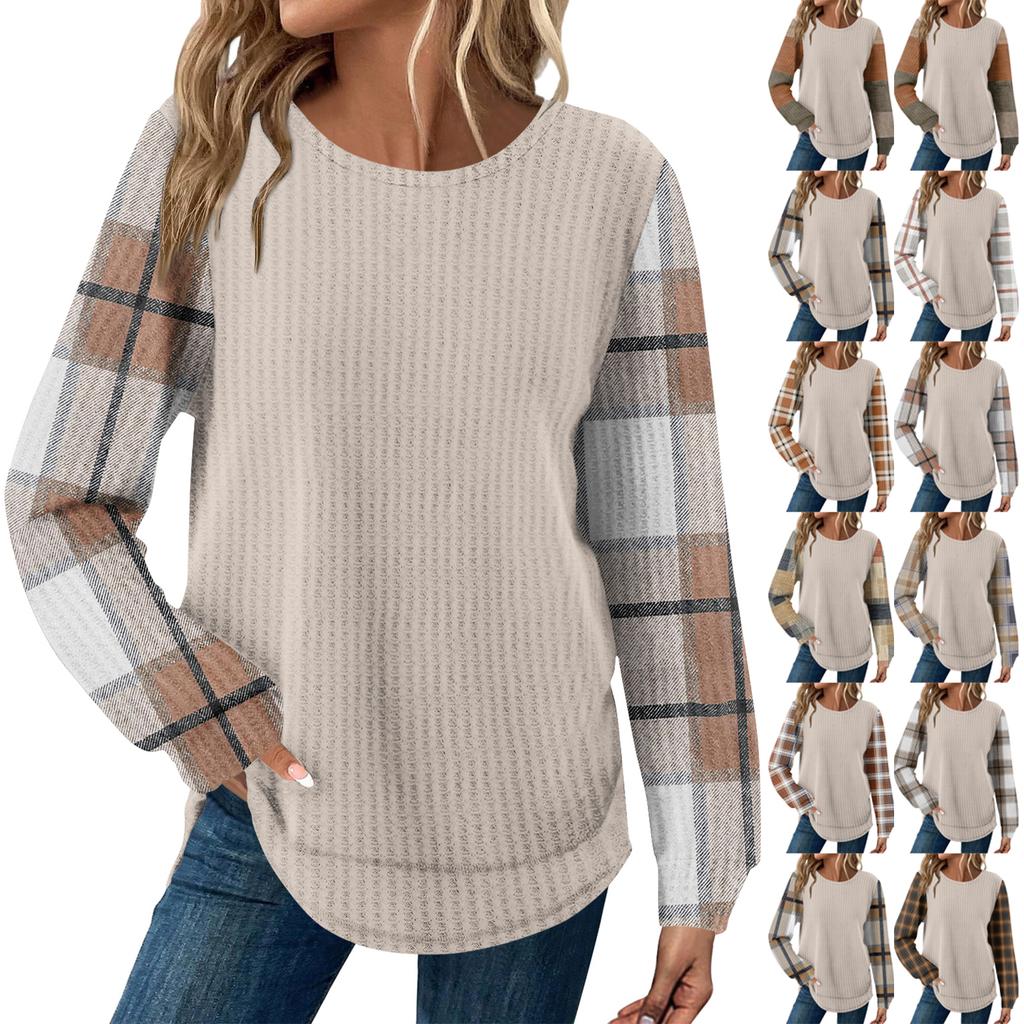 Женский повседневный топ свободного кроя с круглым вырезом и длинными рукавами в клетку — купить товар онлайн с бесплатной доставкой по всему миру!