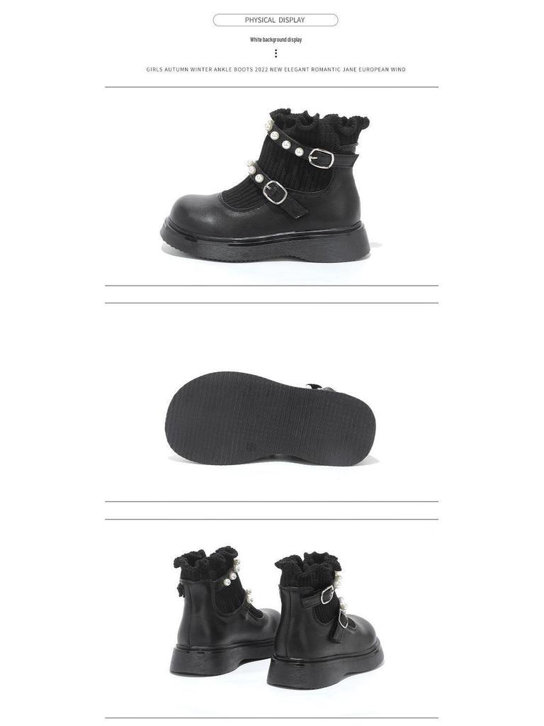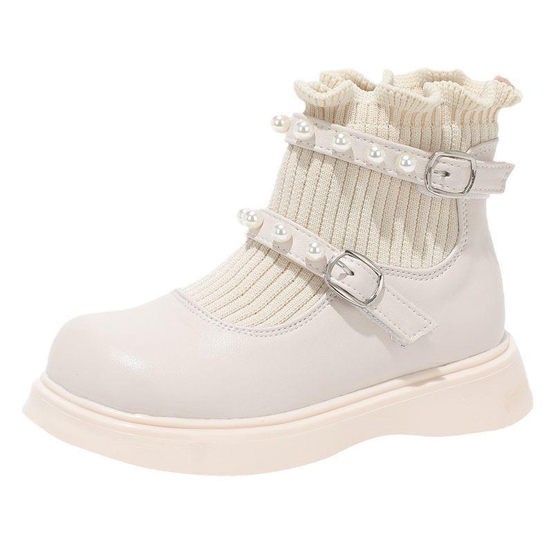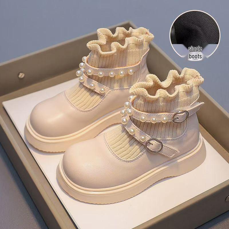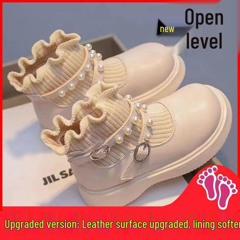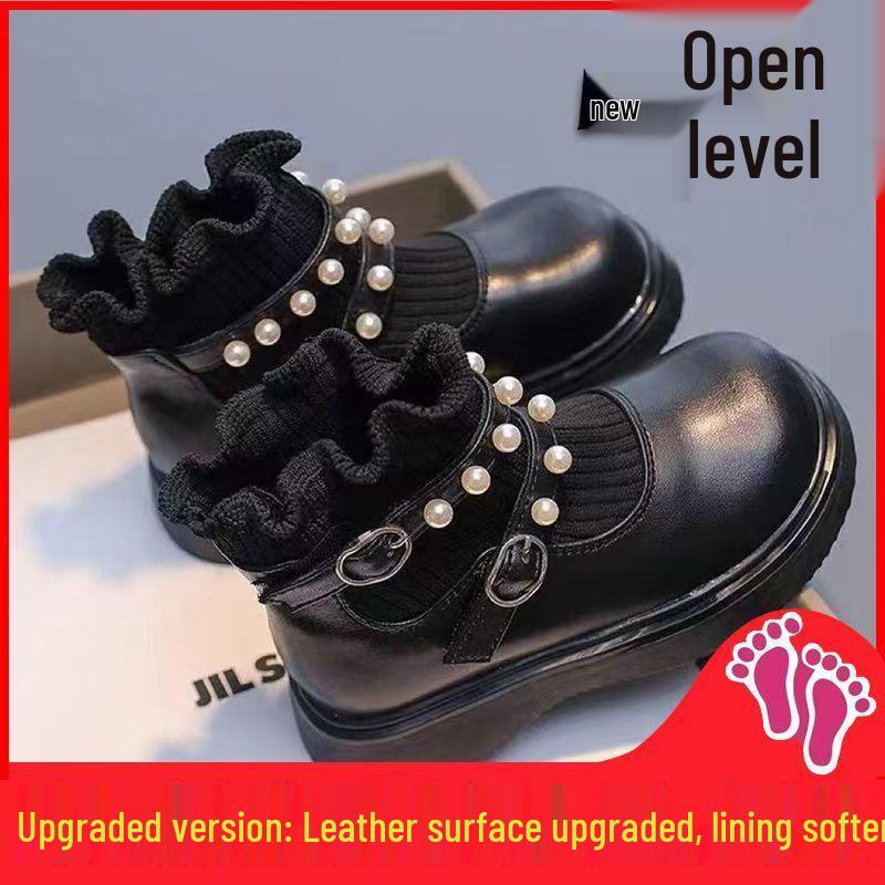 Девичьи ботильоны мартин - Осень/Зима 2025 Натуральная кожа Носок-стиль с бархатом Детские ботинки
