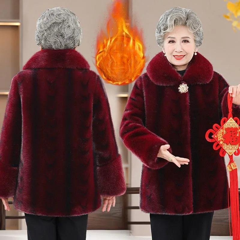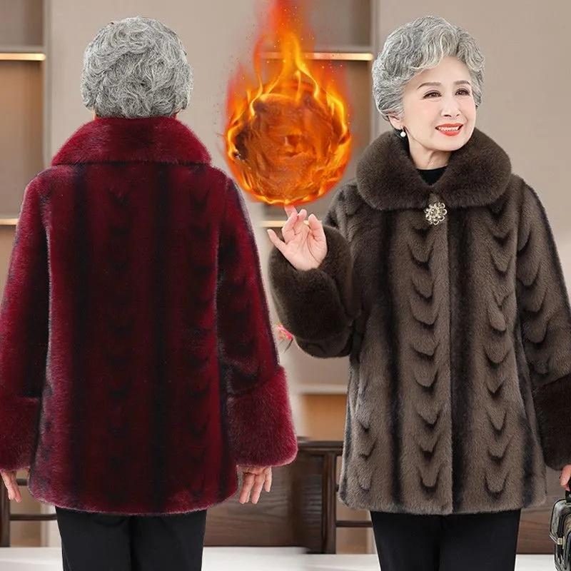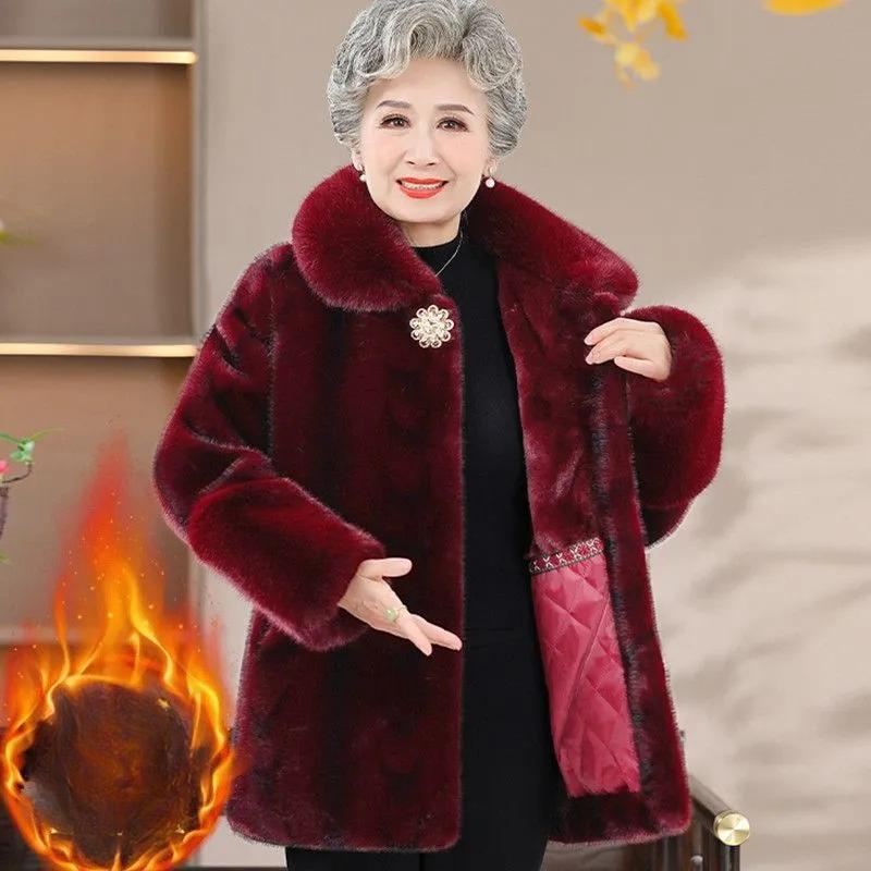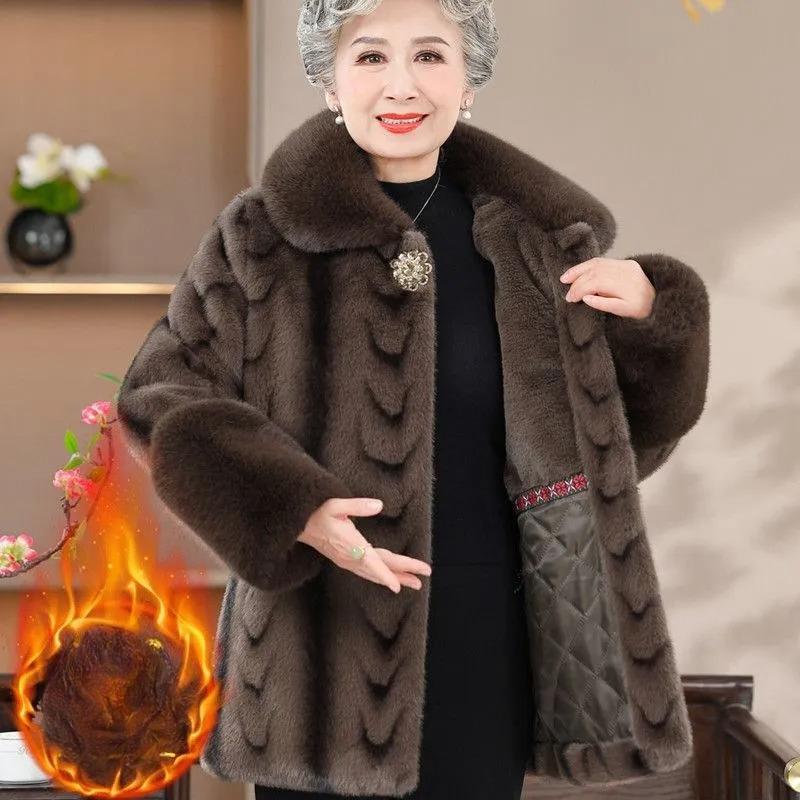 Норковая зимняя шуба, Теплое пальто, Мамина одежда из искусственной кожи и бархата с утолщением
