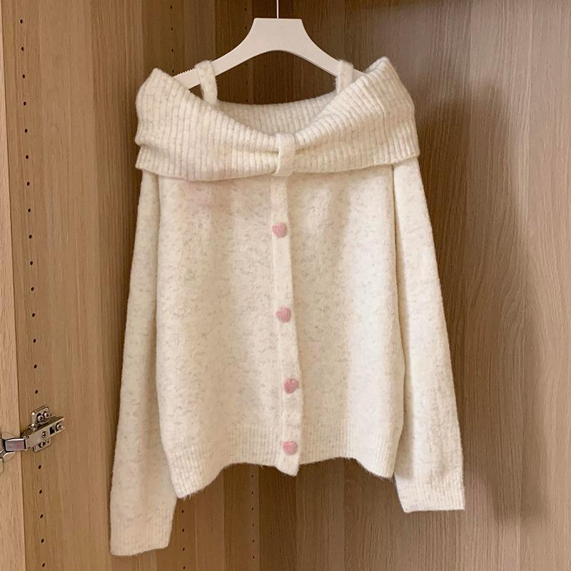Женский вязаный свитер с открытыми плечами - Нежный корейский стиль для осени и весны