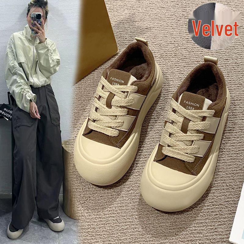 Женские осенне-зимние бархатные кроссовки на толстой подошве - милые и повседневные — купить товар онлайн с бесплатной доставкой по всему миру!