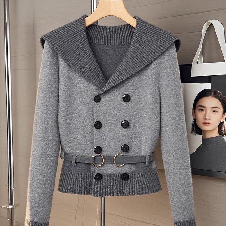 Осень/Зима 2025 Высококлассный Шикарный Серый Свитер и Синяя Миди-юбка Комплект — купить товар онлайн с бесплатной доставкой по всему миру!