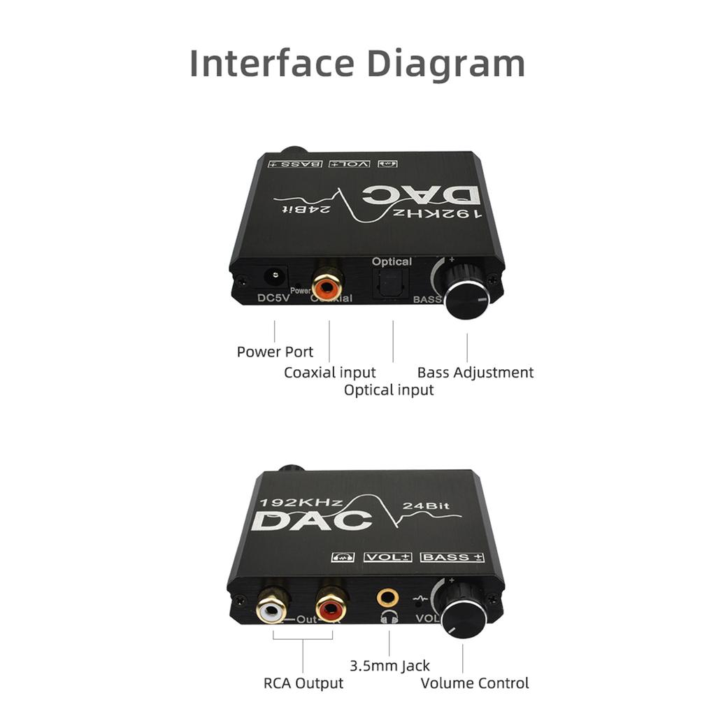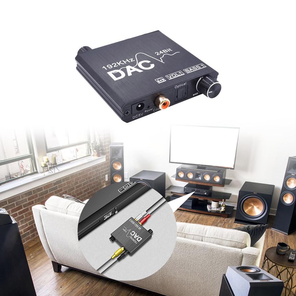 Digital To Analog Audio Converter Fiber Coaxial 192khz Digital To Analog L/R RCA Converter +Bass Adjustment Knob 192KHZ
