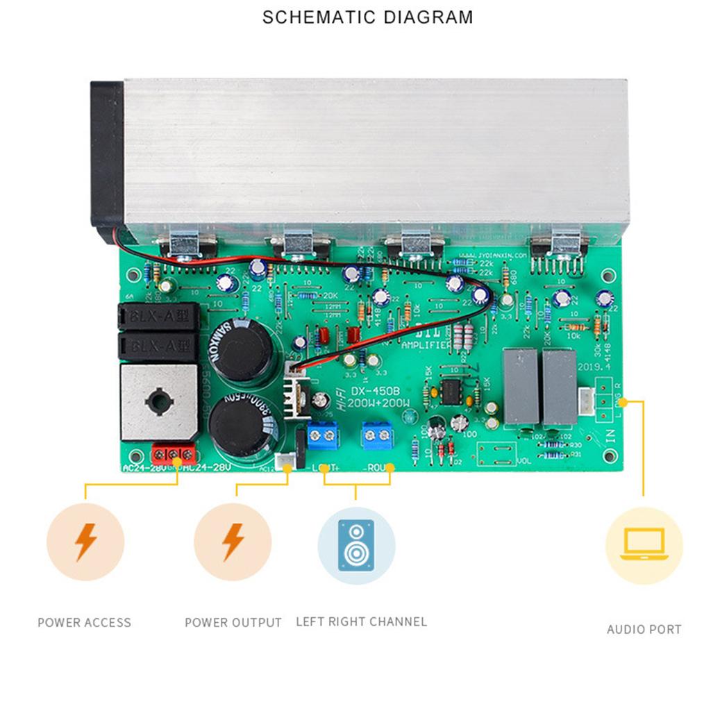 ПОДХОДЯЩИЕ ОБЛАСТИ ПРИМЕНЕНИЯ: Наша плата усилителя высокой мощности 200 Вт + 200 Вт имеет хорошее качество звука, что подходит для модернизации и модификации производства, поэтому эта плата усилителя звука удовлетворит ваши основные потребности.
