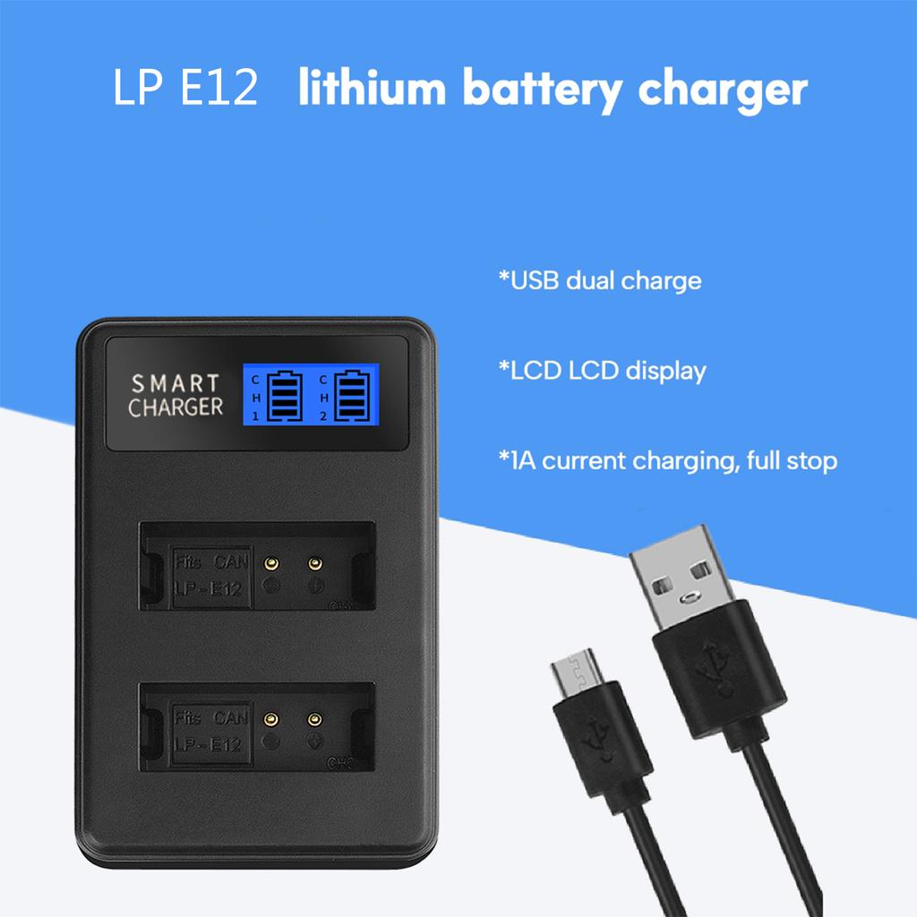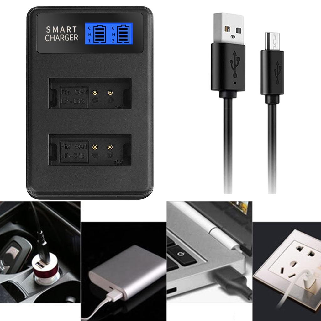 Portable LP-E12 LP E12 LCD Dual Channel USB Battery Charger for EOS M EOS Rebel SL1 EOS 100D Stay Powered