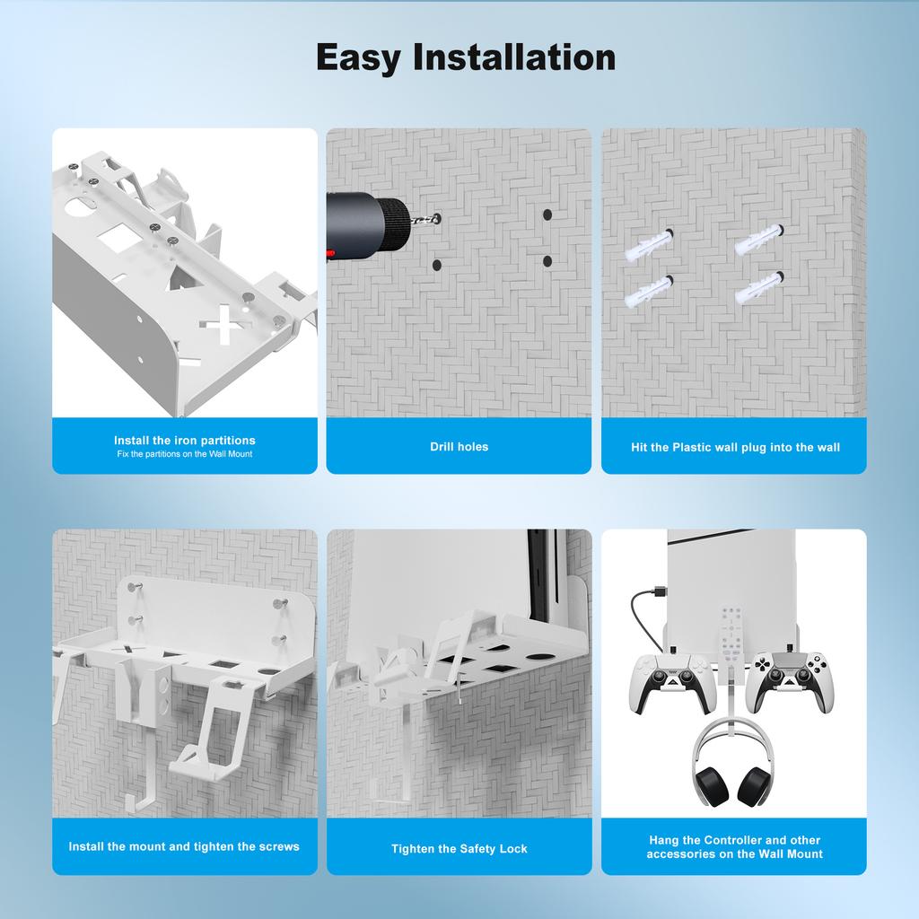 Настенное крепление Подставка-держатель для хоста Кабель для зарядки для PS5 Slim с держателем для контроллера и наушников Кронштейн для игрового геймпада