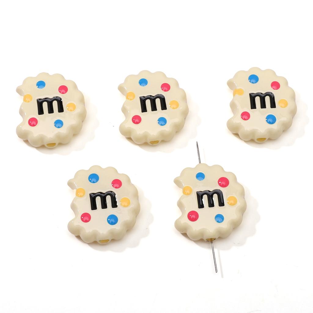 Двусторонние бисквитные шармы Эмаль M Дизайн с подтеками для DIY украшений 2 или 10 шт.