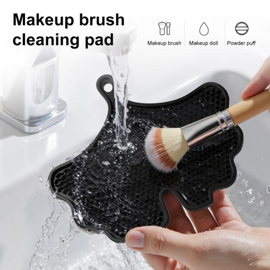 Силиконовый коврик для чистки кистей для макияжа с присосками, нескользящий, портативный, для путешествий, в форме листа гинкго, косметический инструмент, чистящая подушечка