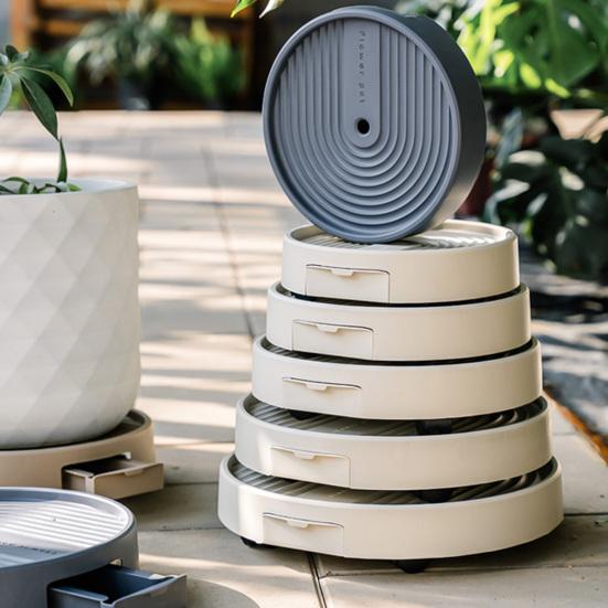 Представляем поддон для цветочного горшка, универсальное решение для ваших потребностей в садоводстве в помещении и на открытом воздухе. Этот инновационный поддон оснащен скрытым резервуаром для сбора воды, который помогает поддерживать оптимальную влажность почвы, а также защищает ваши полы от повреждения водой.. Круговая дренажная система с канавками эффективно собирает избыточную воду, поддерживая здоровье ваших растений и сухость поверхностей.