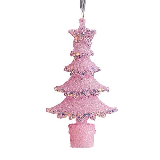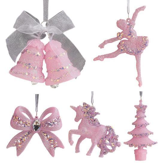 Розовые блестящие рождественские украшения акриловый бант/колокольчик/елка/балерина подвесные украшения для рождественской елки праздничного декора