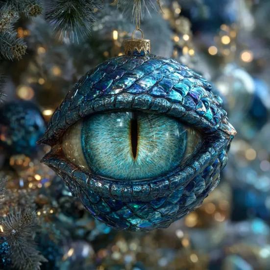 Украсьте свой праздничный декор этим захватывающим рождественским украшением «Глаз дракона». Этот орнамент с удобным шнурком для легкого подвешивания добавляет нотку тайны и фэнтези на вашу рождественскую елку или тематические вечеринки..