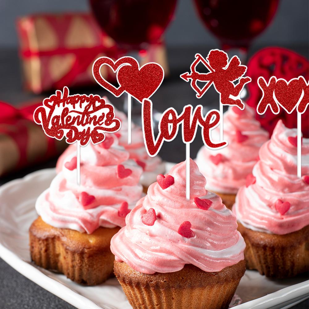 12pcs Red Heart I Love you XOXO Cake Toppers Valentines Day Cupcake Picks Wedding Engagement Birthday Party Cake Decoration