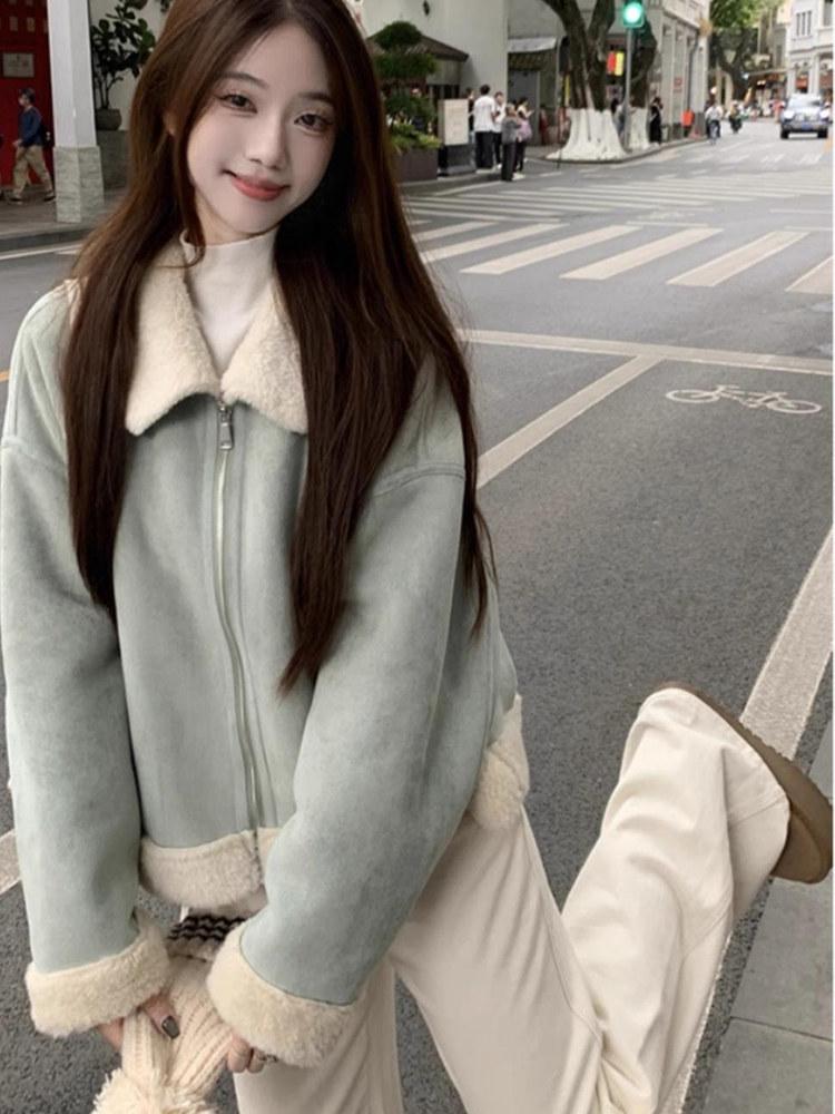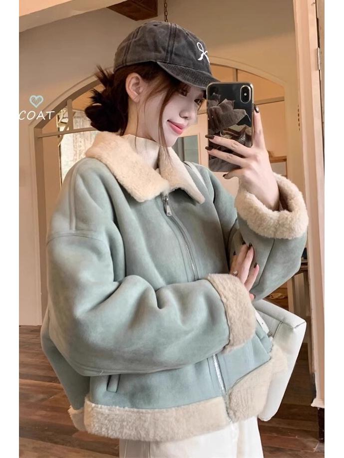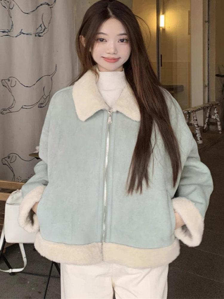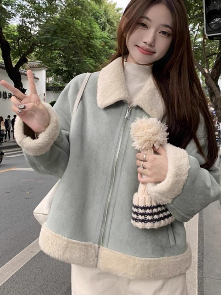 Женская куртка премиум-класса 2025 из плюшевой овечьей шерсти для миниатюрных женщин - На меху, Утепленная, Теплая и Короткая с лацканом