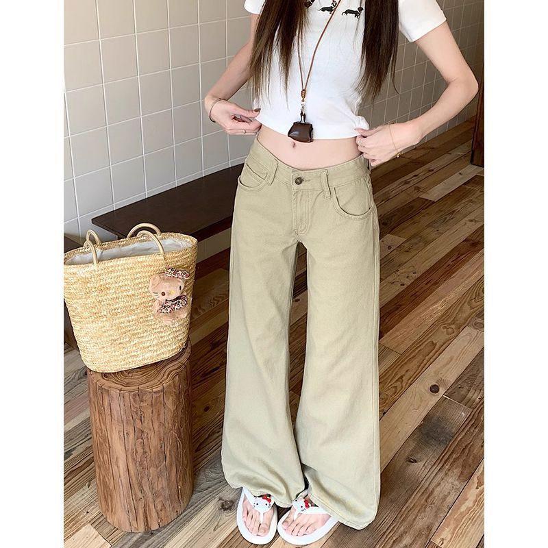 Маленькие корейские хаки широкие брюки с низкой посадкой, стройнящие прямые свободные джинсы в пол для женщин