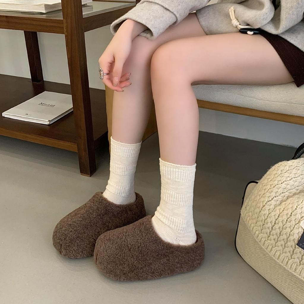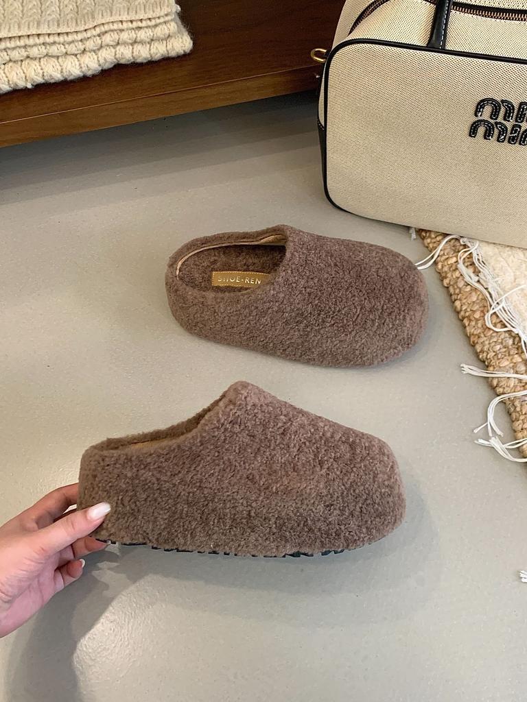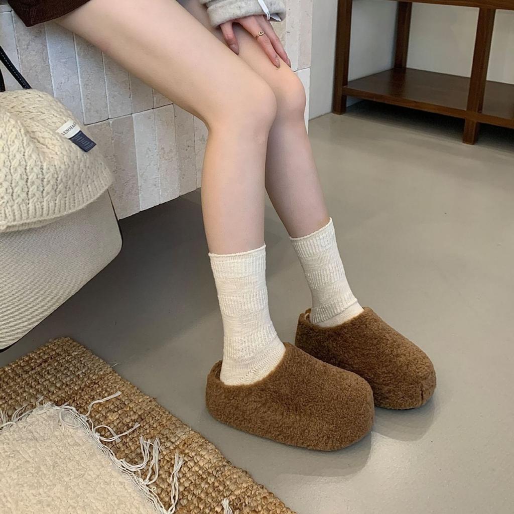 Плюшевые тапочки на толстой подошве женская обувь носить 2025 новый осень и зима плюшевые полуботинки