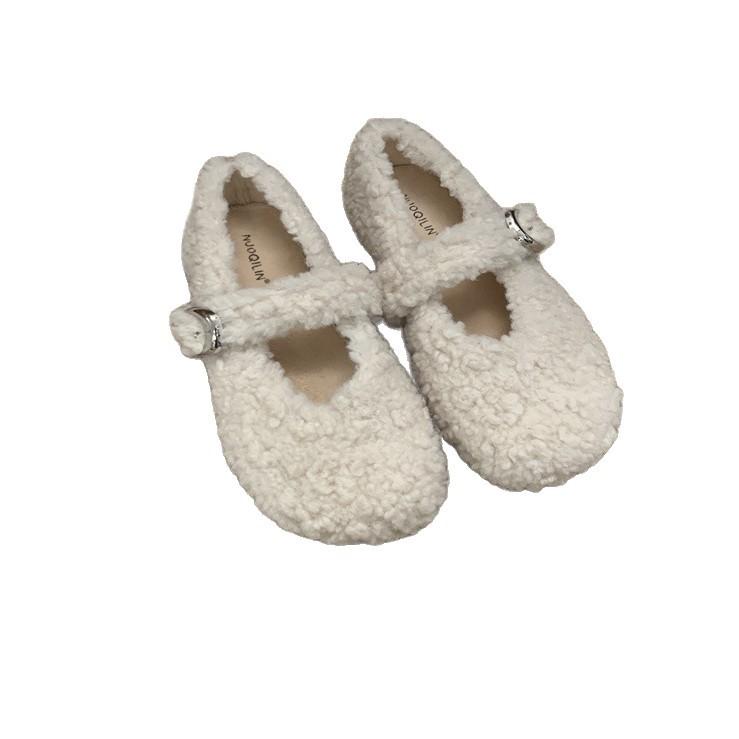 Ретро нежные плюшевые и пушистые туфли для женской коллекции осень-зима 2025, новые, милые, для ношения с юбкой, хлопковые туфли-дуду на одном педале