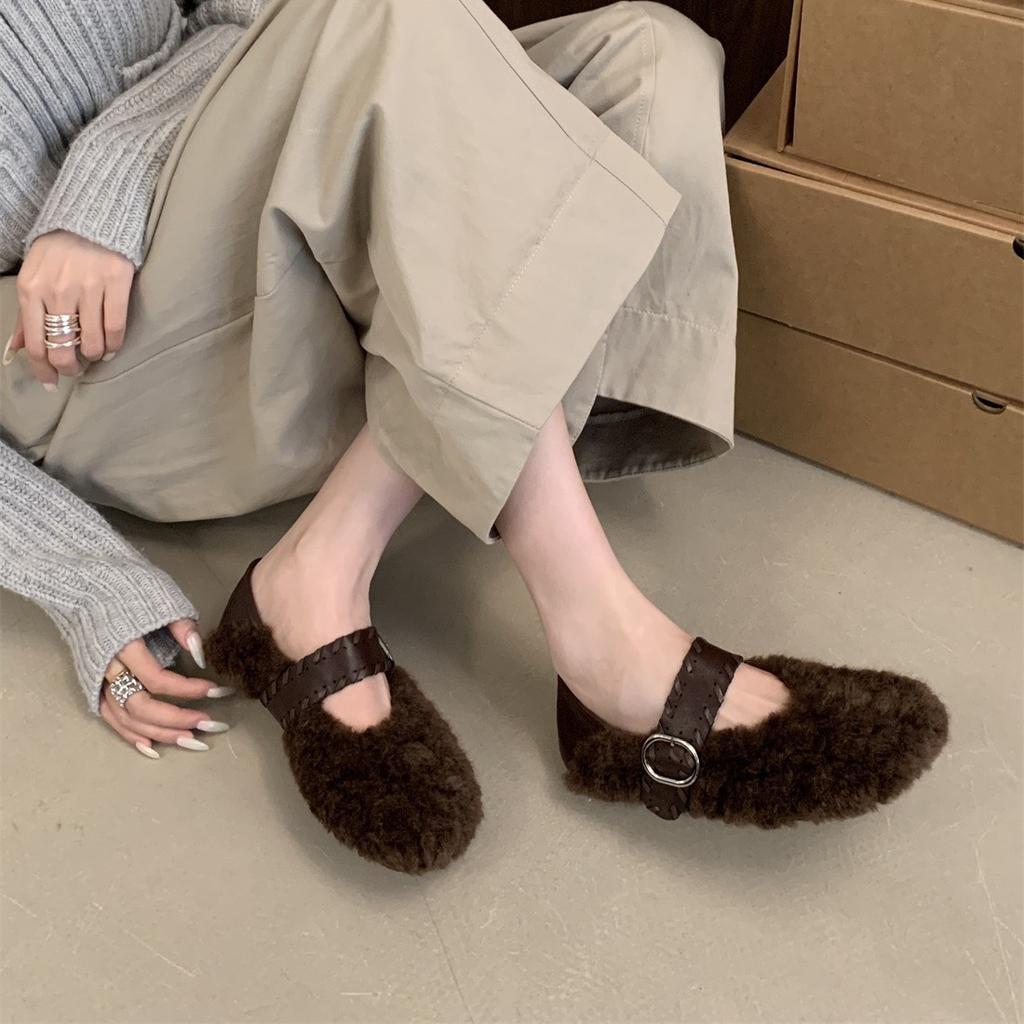 2025 зима новые туфли Мэри Джейн на плоской подошве из бархата с круглым носком, теплые, удобные, универсальные, пушистые туфли