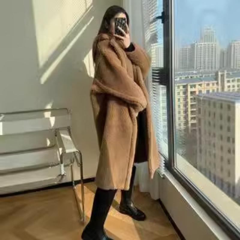 Пальто-тедди женское пальто из искусственного меха гусеница длинный силуэт кашемировое пальто