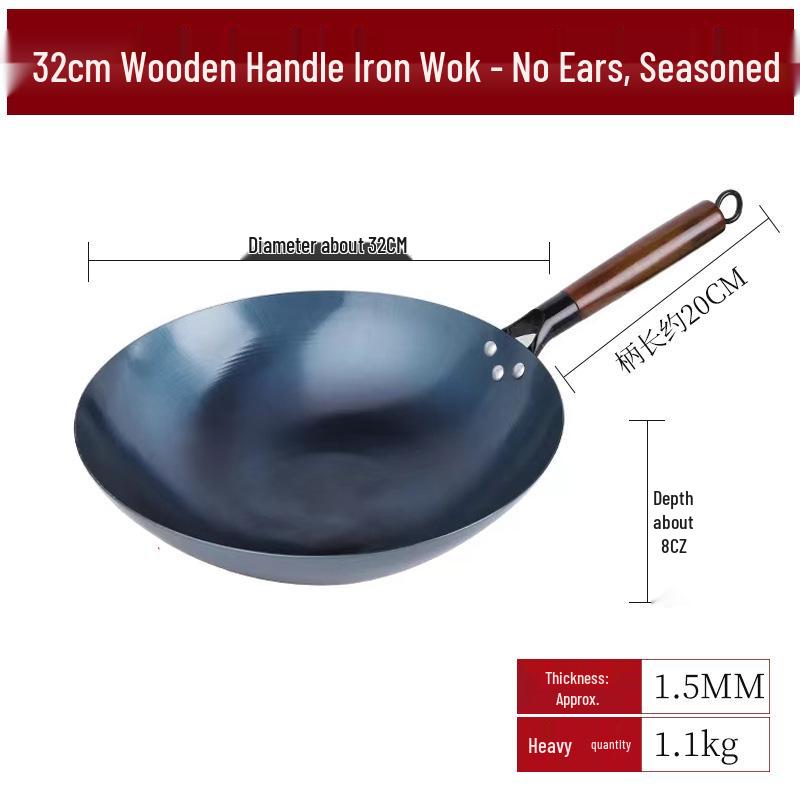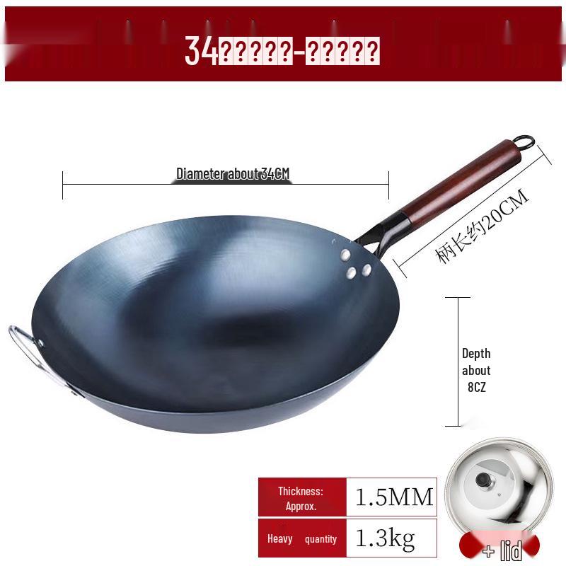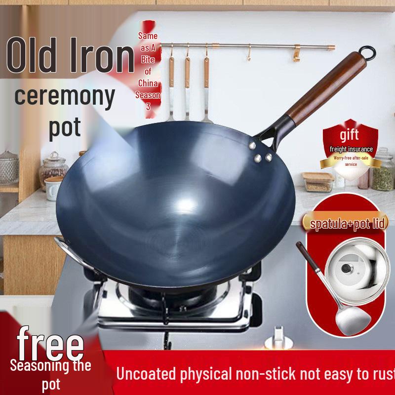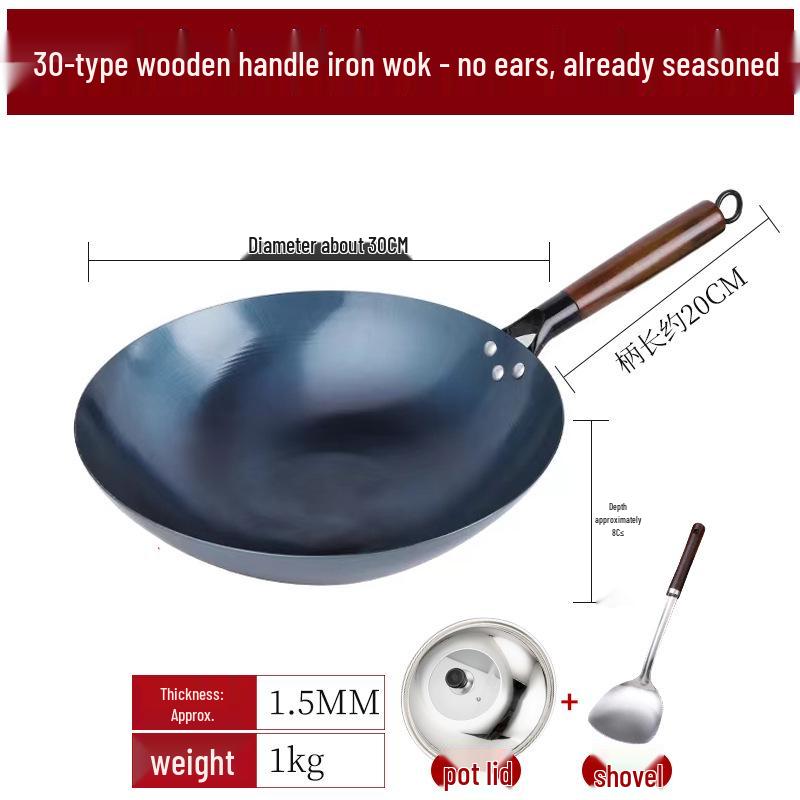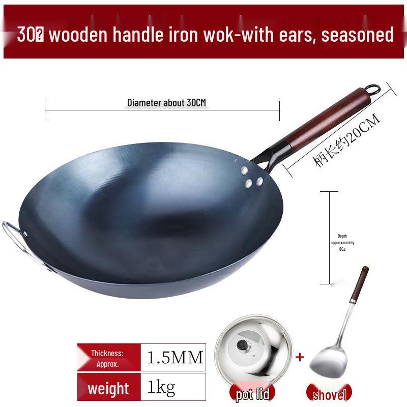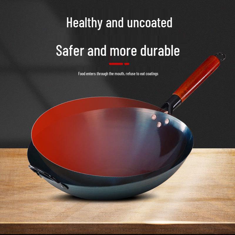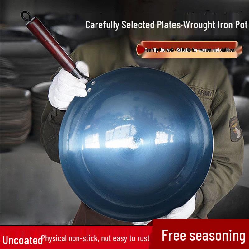 Вок «Кончик языка» для жарки перемешиванием – Круглое дно, Кованая непокрытая антипригарная сковорода для домашнего использования