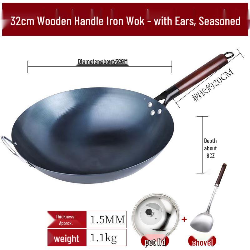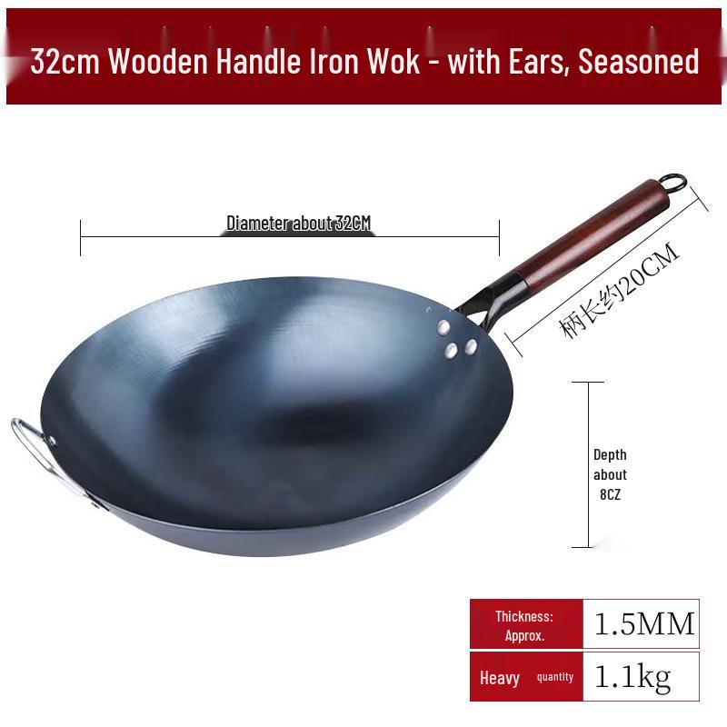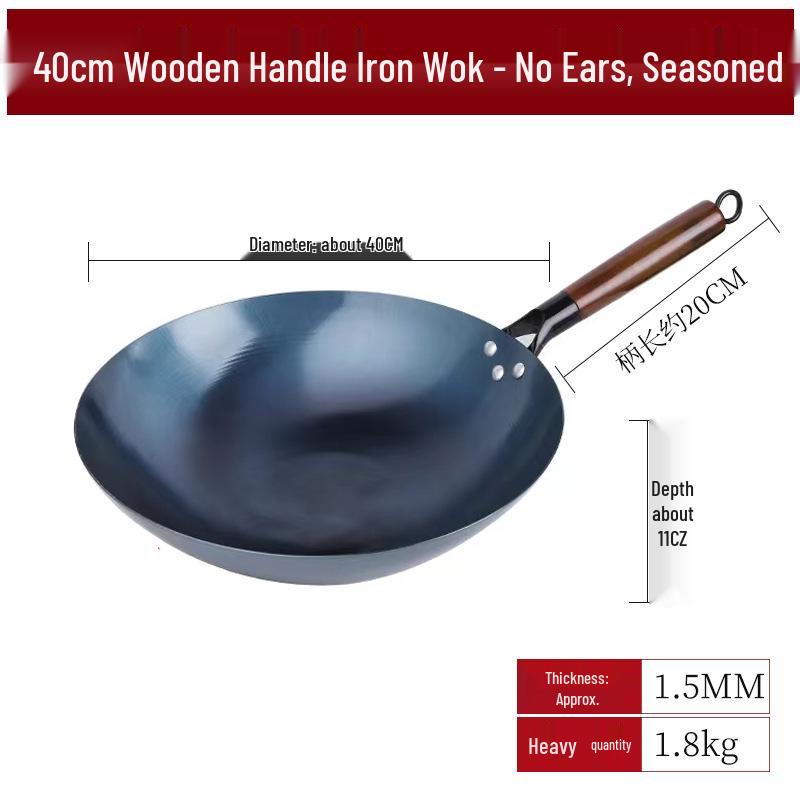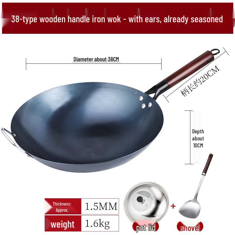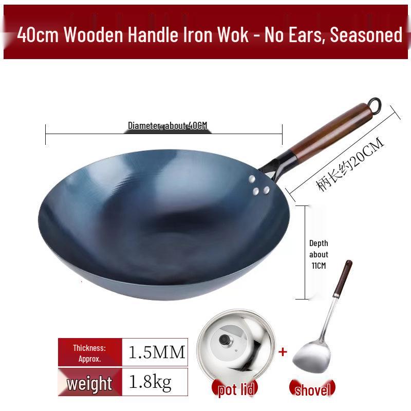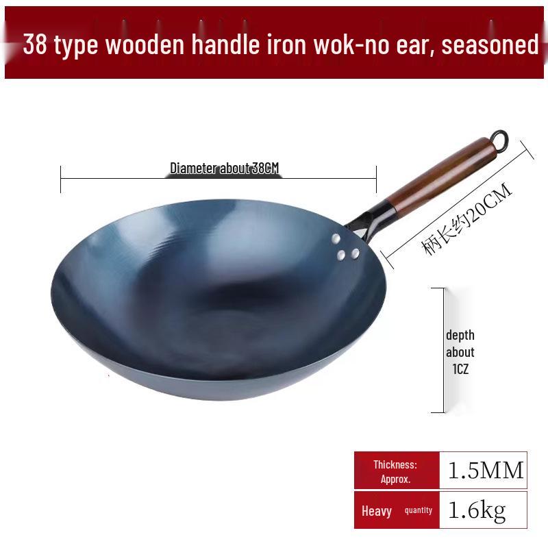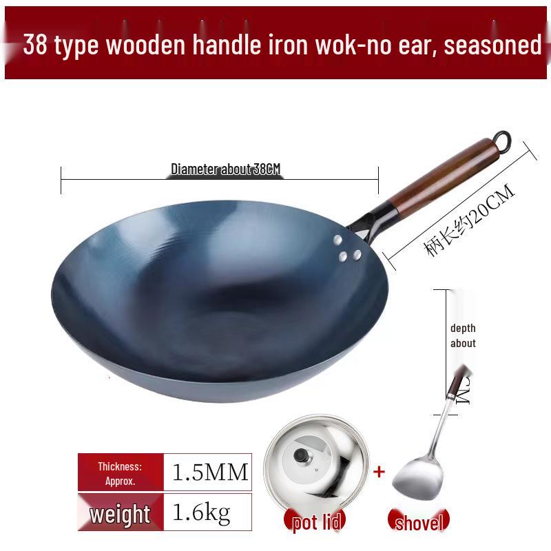 Вок «Кончик языка» для жарки перемешиванием – Круглое дно, Кованая непокрытая антипригарная сковорода для домашнего использования