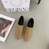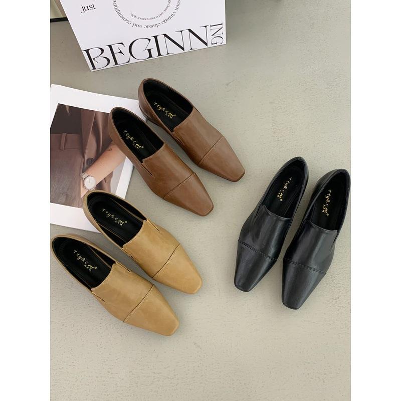 2025 новые минималистичные лоферы с текстурой холодного ветра, толстый низкий каблук, квадратный носок, глубокий вырез, одинарные туфли на одной педали, маленькие кожаные туфли женские