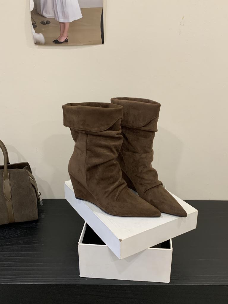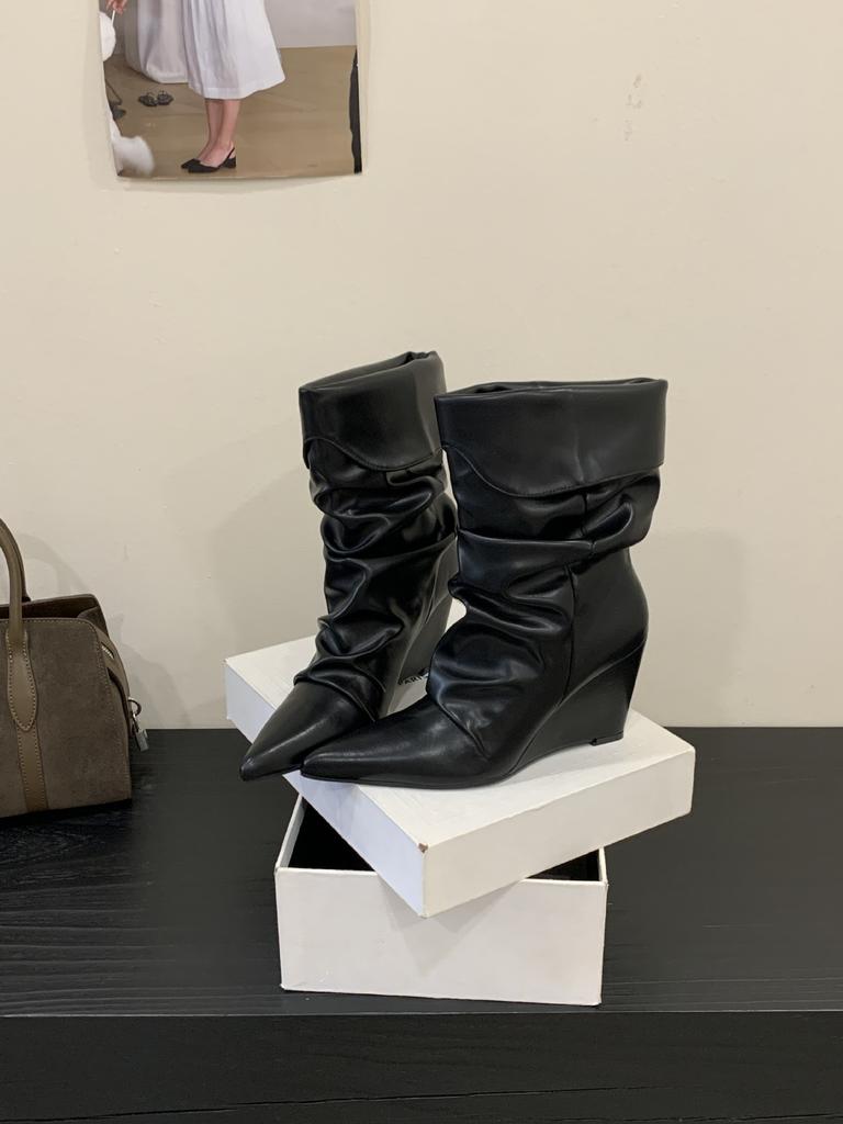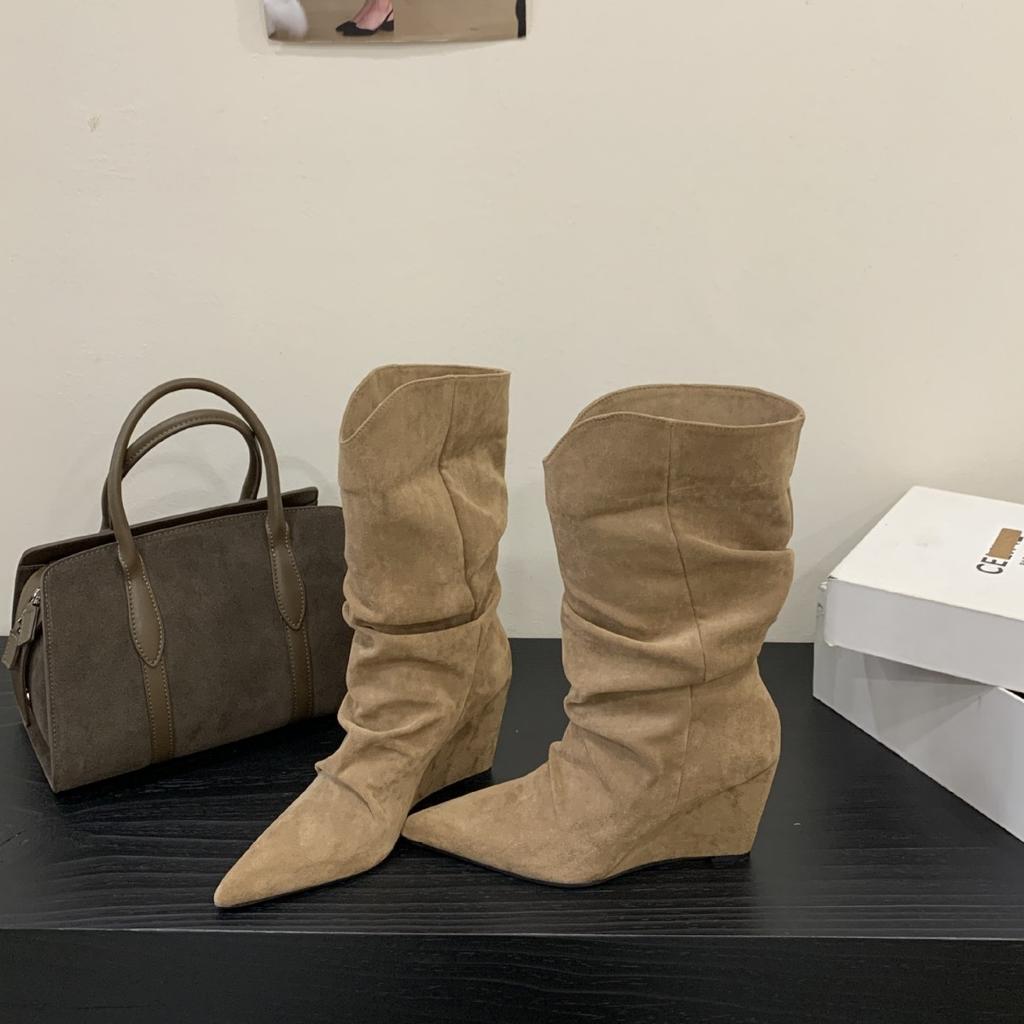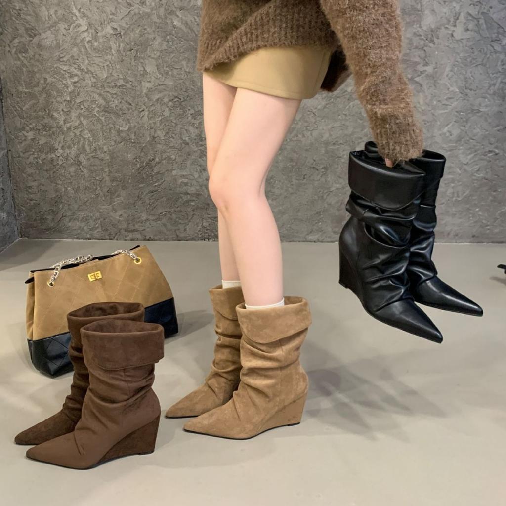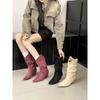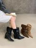 2025 осень и зима новые ботинки-чулки средней длины на танкетке с французским острым носком в стиле вестерн ковбойские короткие ботинки женские