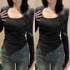 Женский топ с асимметричным разрезом, длинным рукавом и U-образным вырезом в корейском стиле - Мода весна/лето