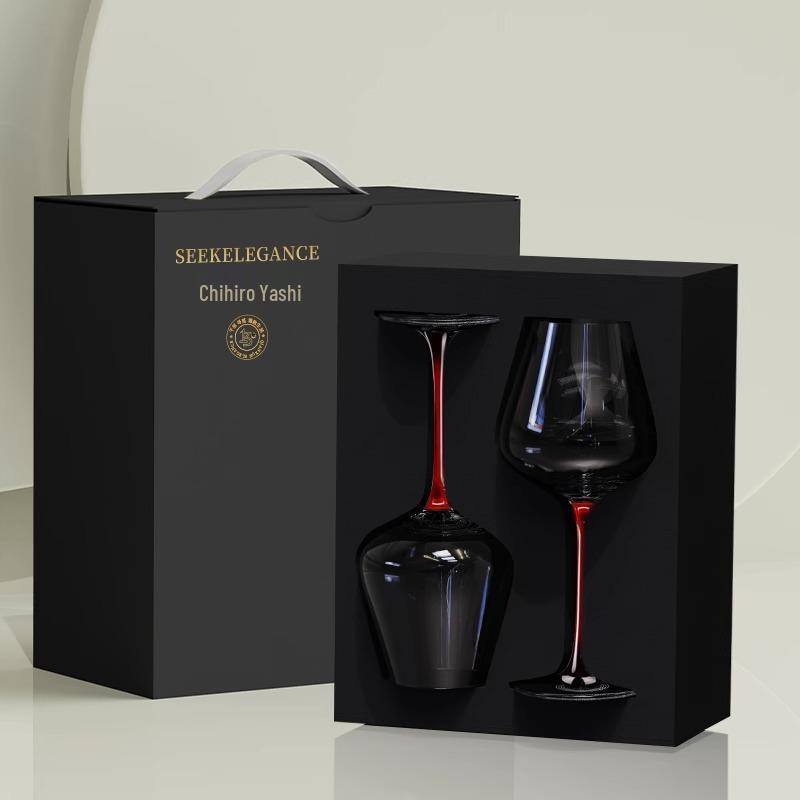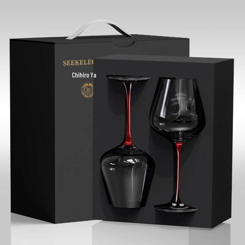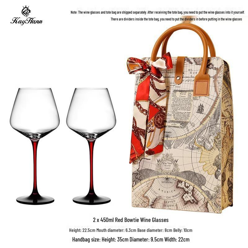 Бордовый бокал на высокой ножке для красного вина - Набор из 2 штук в подарочной коробке