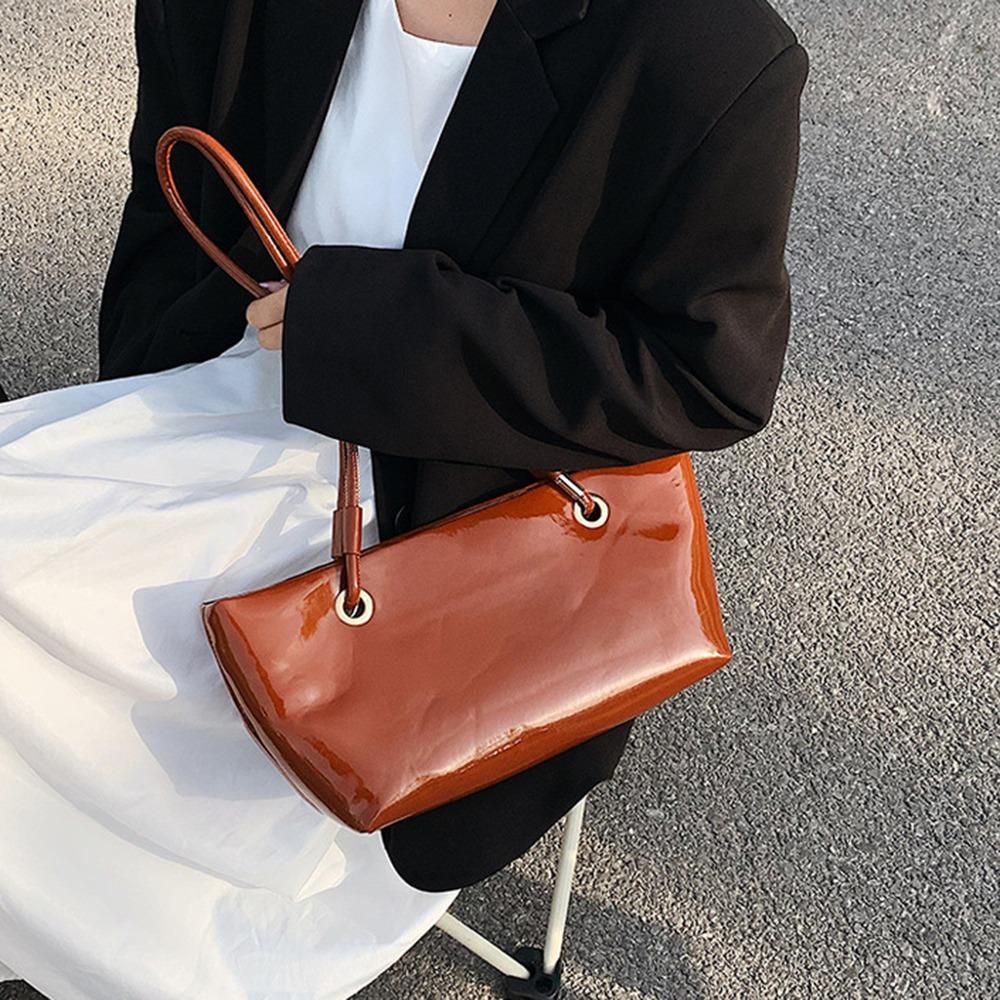 Гладкая сумка подмышку в корейском стиле Элегантная сумка-тоут для работы Патентная кожа Сумка через плечо Для улицы
