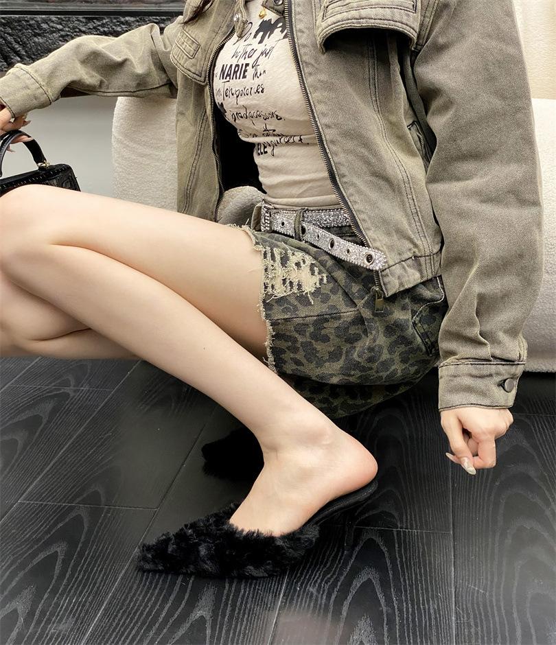 Новые женские модные тапочки, стильные, красивого цвета, пушистые полутапочки, женские туфли на шпильке, туфли на высоком каблуке, осенние туфли на высоком каблуке