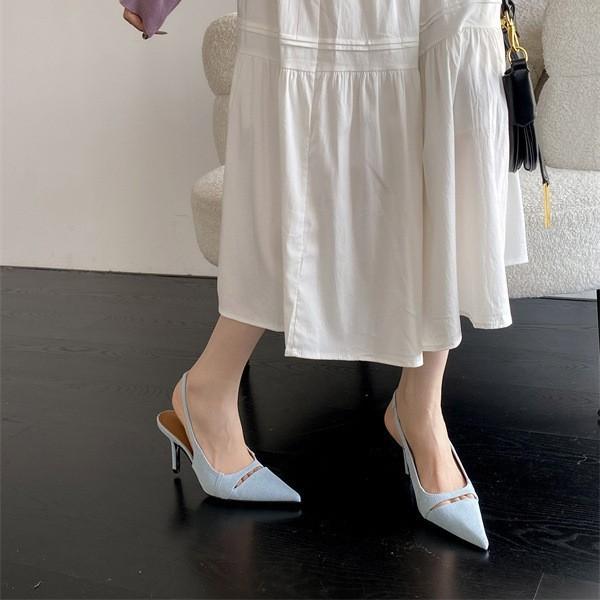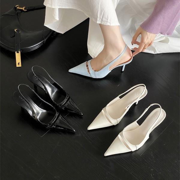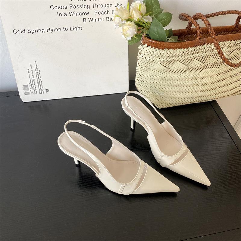 Весна и лето 2025 года женская обувь в корейском стиле французский тонкий каблук остроносые босоножки на высоком каблуке с ремешком на пятке туфли-лодочки с открытым верхом