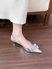 2025 spring and autumn new fashionable versatile green pointed flower shallow mouth sandals women's rear air heel single shoes