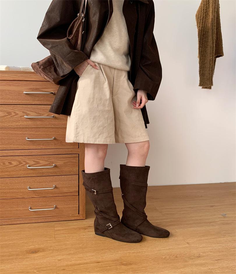 2025 осень высококачественные ручной работы ботфорты на платформе до колена с круглым носком, внутренняя высота увеличивает расслабление, замшевые ботинки женские