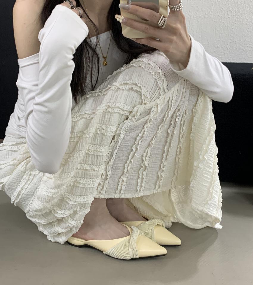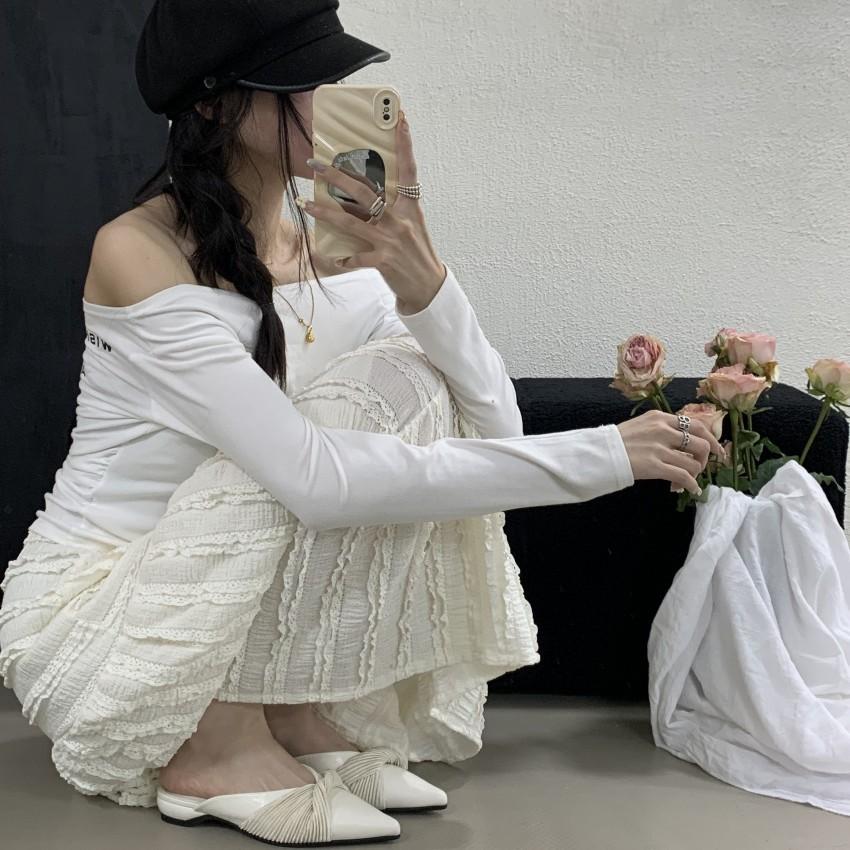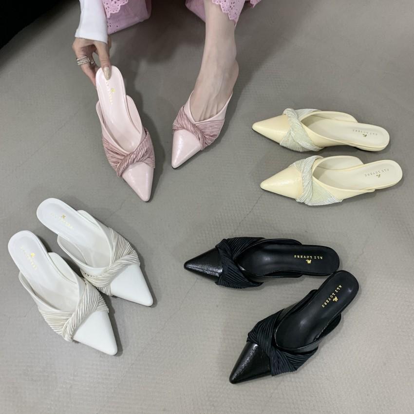 2025 весна и лето новые трендовые шлепанцы с острым носом и бантом на плоской подошве, тонкий плоский каблук, закрытый носок, полуоткрытые женские туфли для улицы