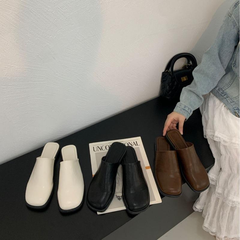 Весной и осенью 2025 года новая ретро британская сумка с плоским дном, головка и полушлепанцы, женская обувь, версия для ношения, обувь Мюли — купить товар онлайн с бесплатной доставкой по всему миру!
