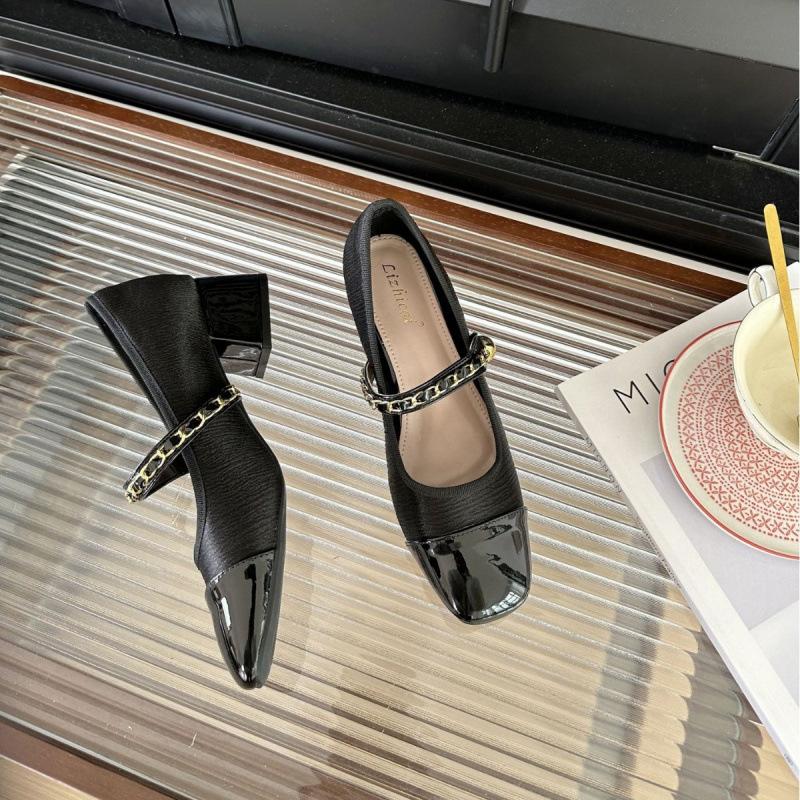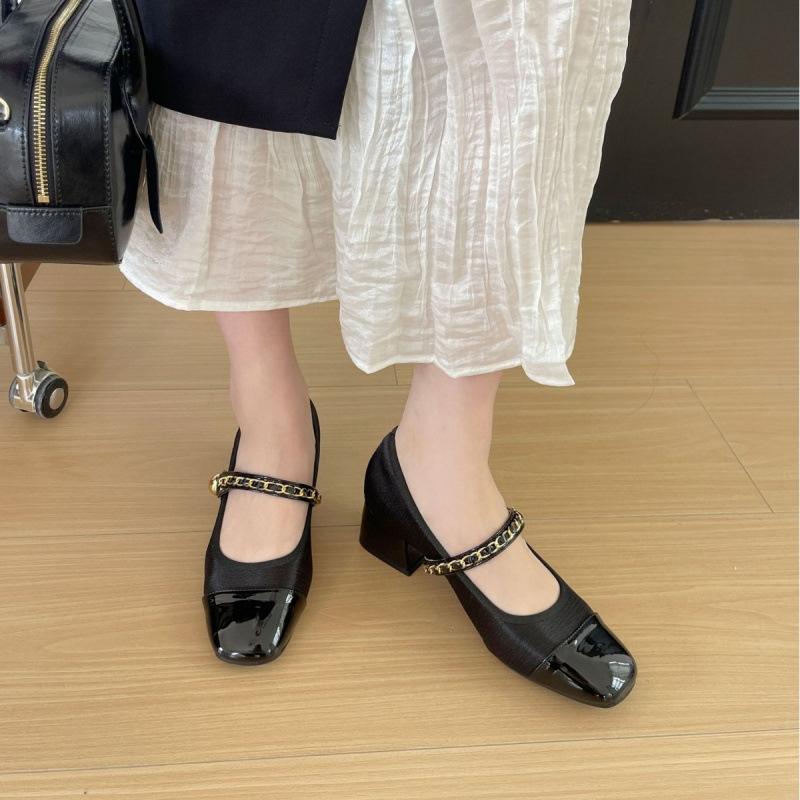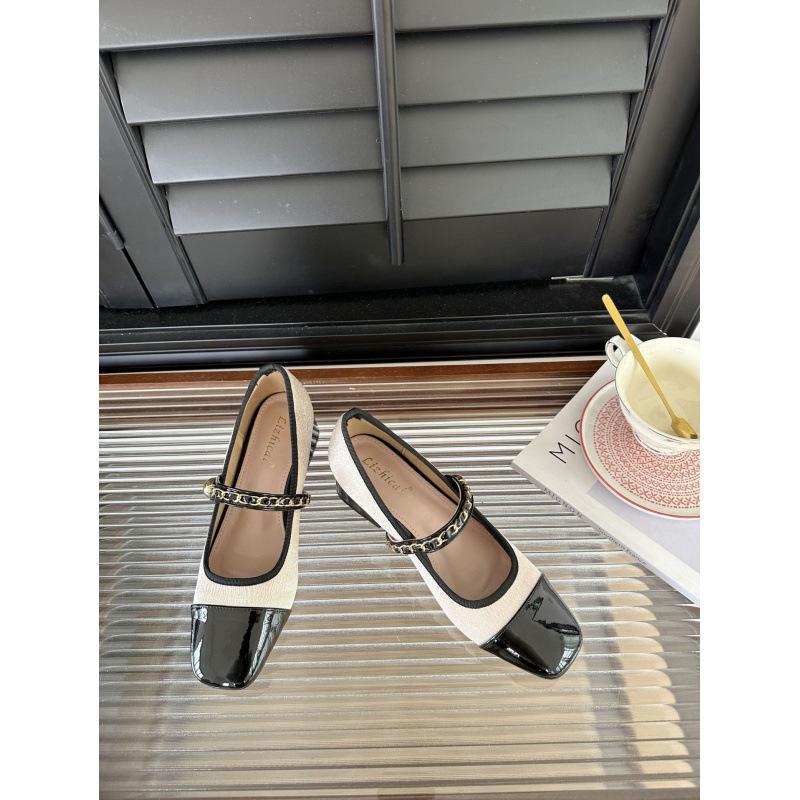 2025 весна и осень новая мода универсальный толстый каблук французский маленький ароматный пэчворк квадратный носок туфли Мэри Джейн женская обувь