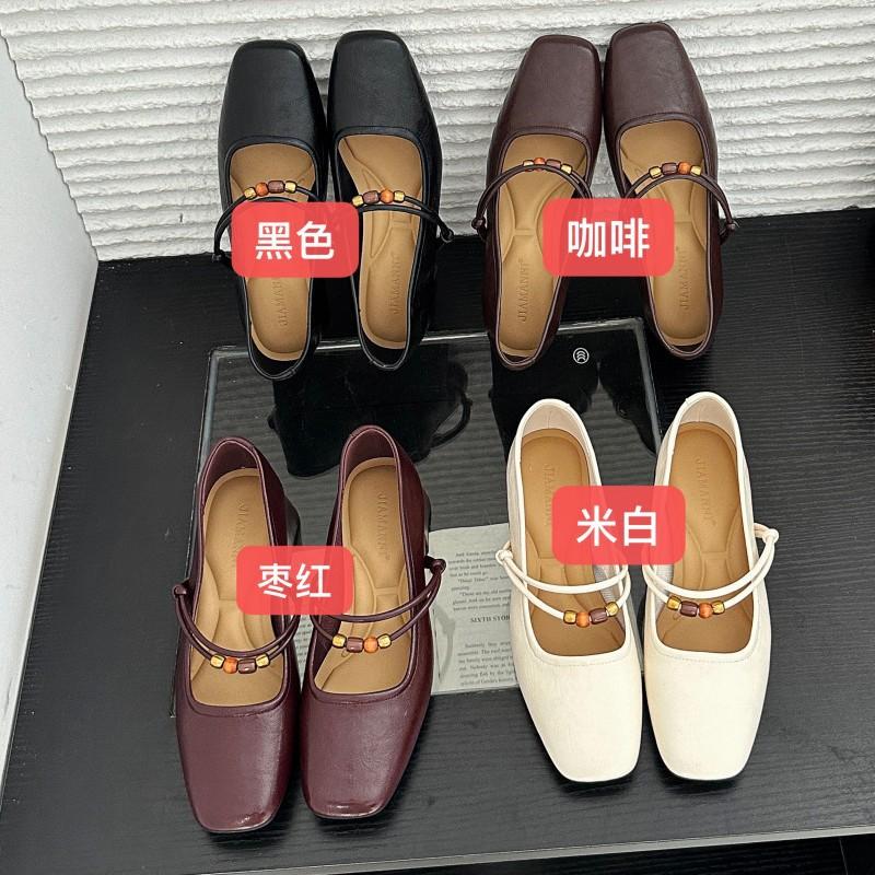 Французские туфли Мэри Джейн с квадратным носком женская обувь 2025 осенняя мода новые ретро с надписью мелкий вырез одинарные туфли кожаные туфли черные