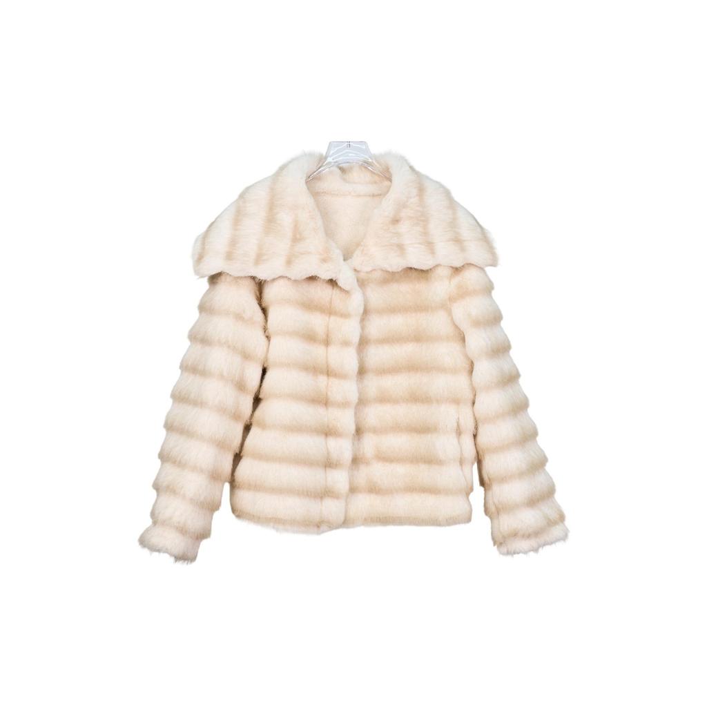 Женская короткая шуба из искусственного меха шиншиллы и кожи - Универсальная и плюшевая, осенне-зимний стиль с большим лацканом.