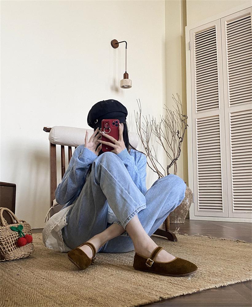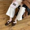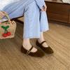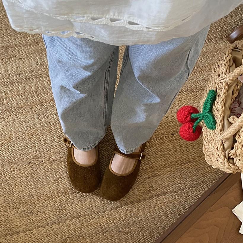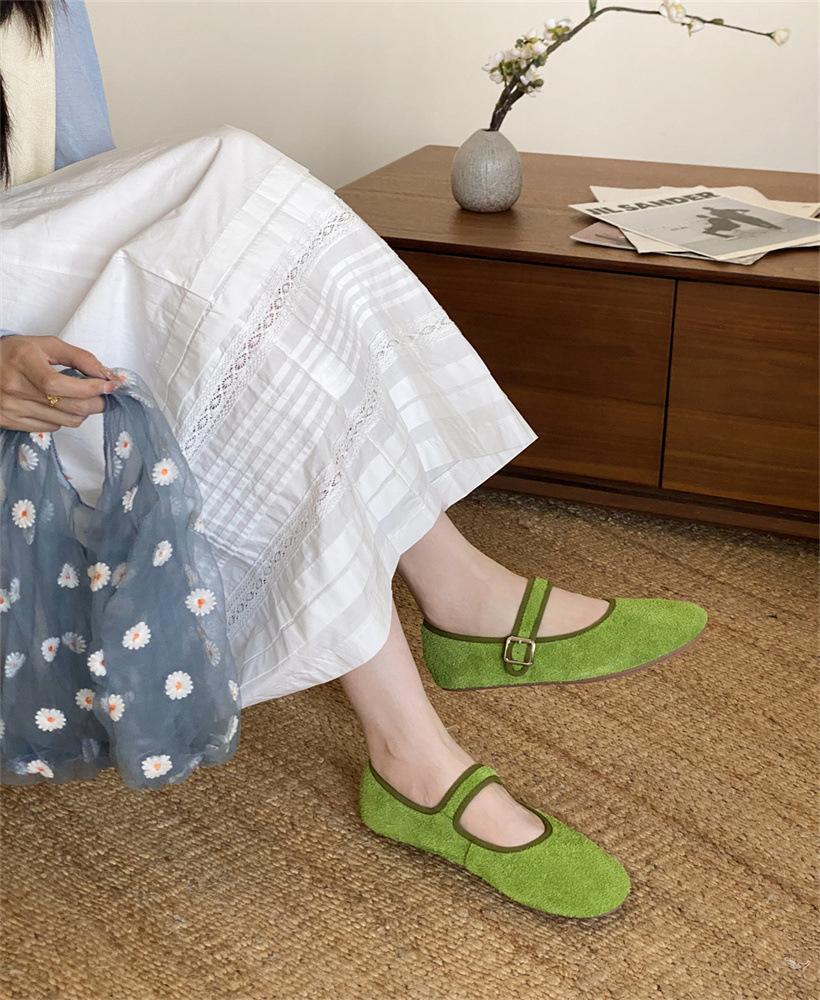 The first layer of cowhide small single shoes for women's autumn new one-word buckle with shallow mouth round head flat bottom versatile