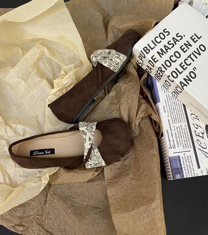 Женские одинарные туфли на плоской подошве 2025 новая весна и осень универсальная модная вечерняя бриз круглый носок мелкий вырез Мэри Джейн туфли бабушки