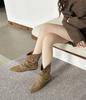 Женские ботильоны на скрытой платформе, короткие ботинки, обувь 2025 весна-осень, одинарные ботинки, остроносые, хаки, юбка, высокий каблук, тонкие ботинки