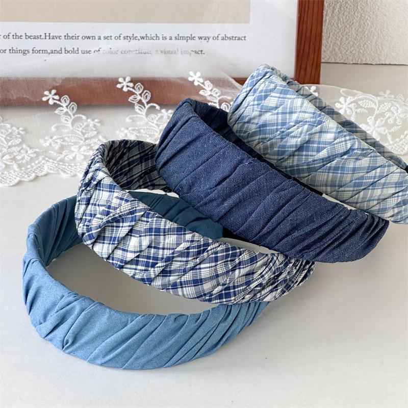 Корейский стиль Синяя джинсовая широкая твиловая повязка на голову – Аксессуар для волос для мытья лица с высоким верхом