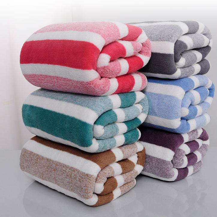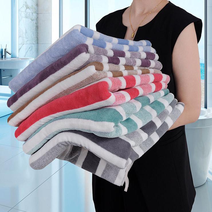 1 шт. Супермягкое полосатое банное полотенце из кораллового флиса, Современное тканое прямоугольное полиэстеровое полотенце, Супервпитывающее и приятное для кожи банное полотенце