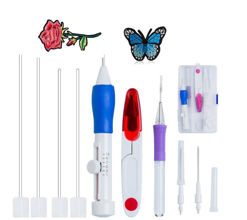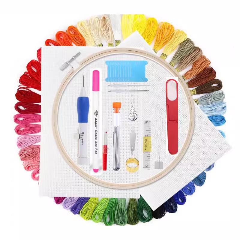 Набор игл для вышивания пуансонной техникой и мулине для вышивания крестиком, крючок для вязания