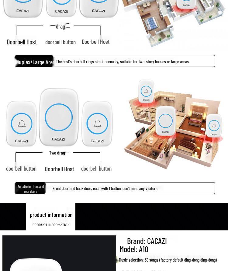 Katia A10 Черный Беспроводной Музыкальный Дверной Звонок Дальнего Действия и Пейджер для Пожилых Людей