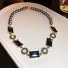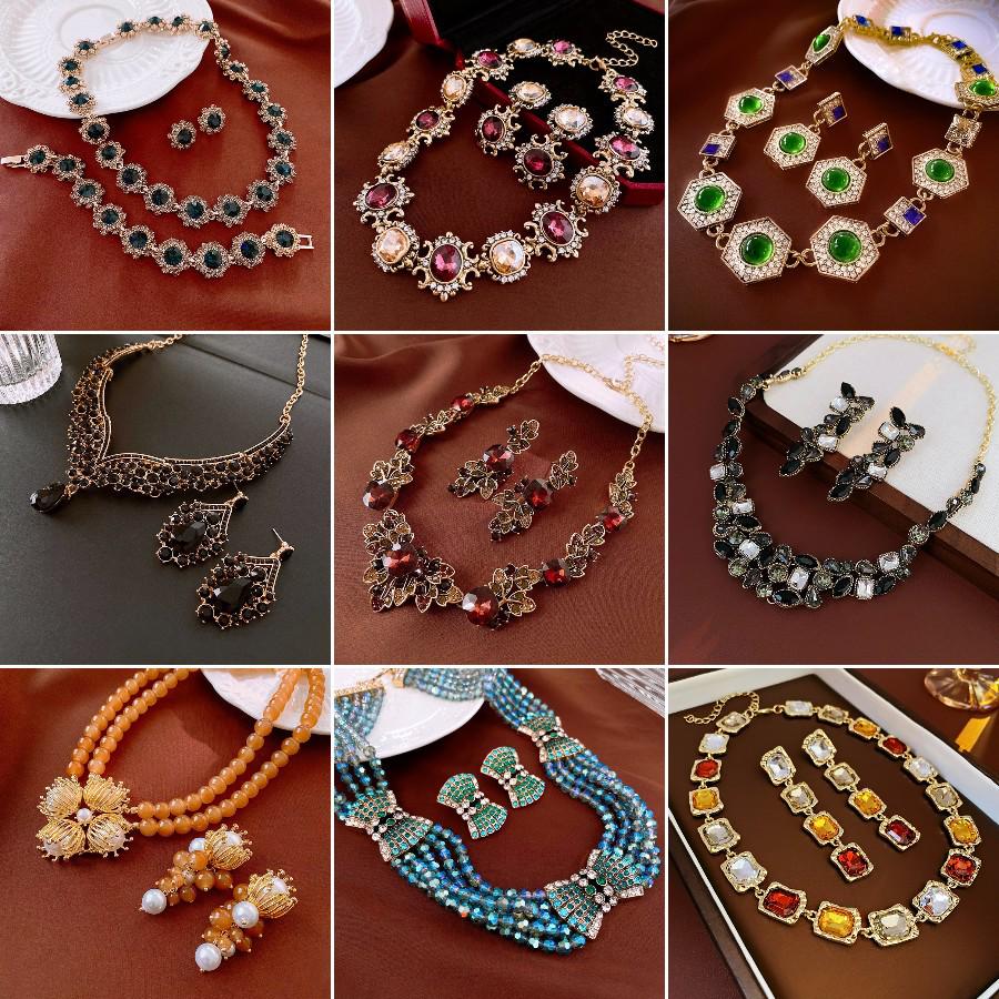 Инкрустированное бриллиантами колье-цветок и ретро-браслет, серьги - набор, европейский и американский стиль, цепочка для ключиц, ювелирные изделия высокого класса