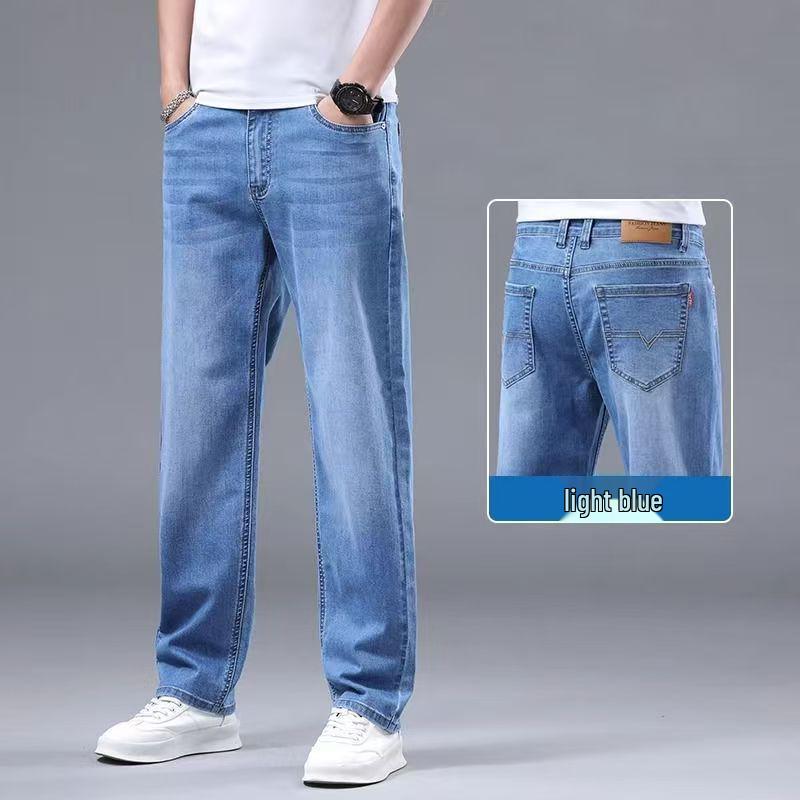 Мужские модные эластичные свободные джинсы прямого кроя - износостойкие повседневные брюки для осени и лета