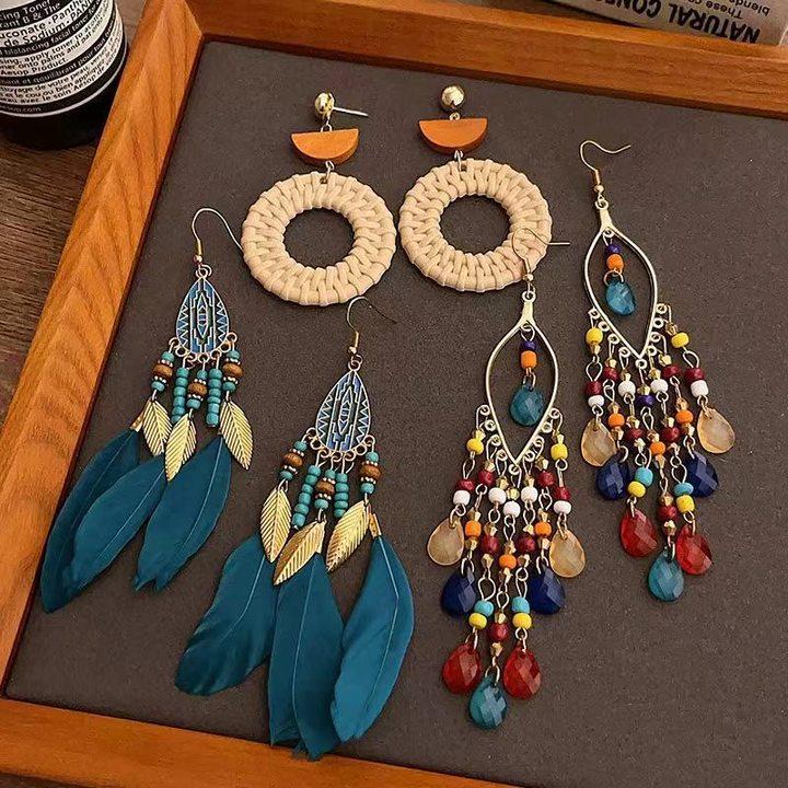 Богемные серьги с кисточками из перьев: Уникальные плетеные длинные серьги для женщин